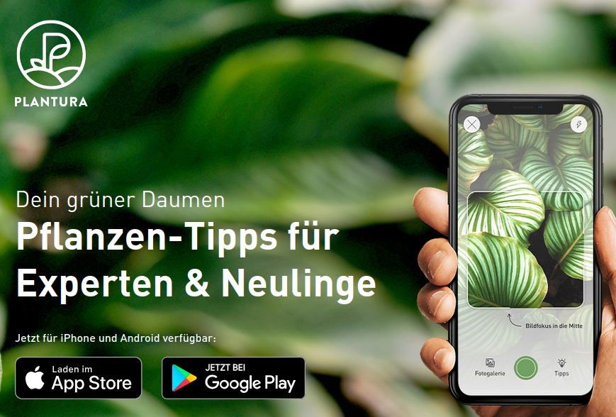 Aber immer noch gilt dabei den Pflanzen unser Hauptaugenmerk. Eine sehr nützliche Hilfe bei deren Bestimmung und Pflege kann uns u.a. die Smartphone-App PLANTURA bieten – vielleicht versuchen Sie’s auch einmal damit (Bild bitte anklicken):
